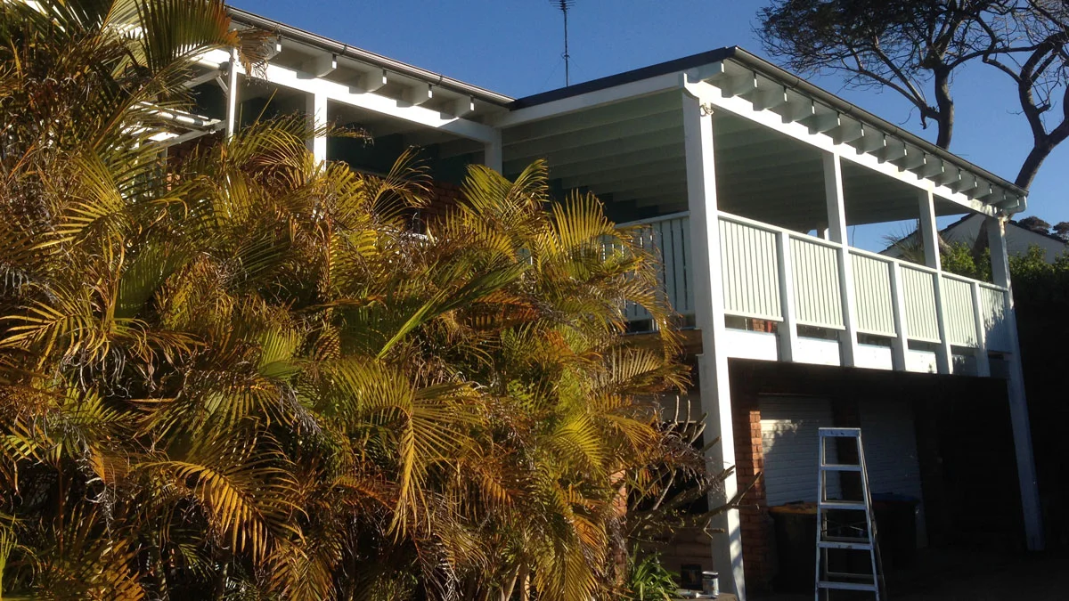 The project began with demolition of the existing balcony's steel beams and balustrade. The new extension, using thick, hard wood posts and wooden boundaries gives the balcony a fresh new look. A Versiclad roof with exposed beams covers the entire deck, providing much needed shade in the warmer months and a sense of privacy, whilst making the most of the view.